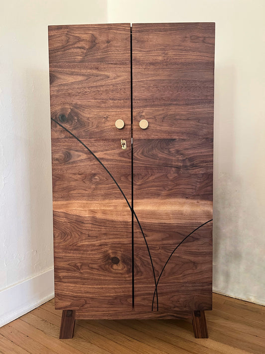 American walnut liquor cabinet with Birdseye maple accents